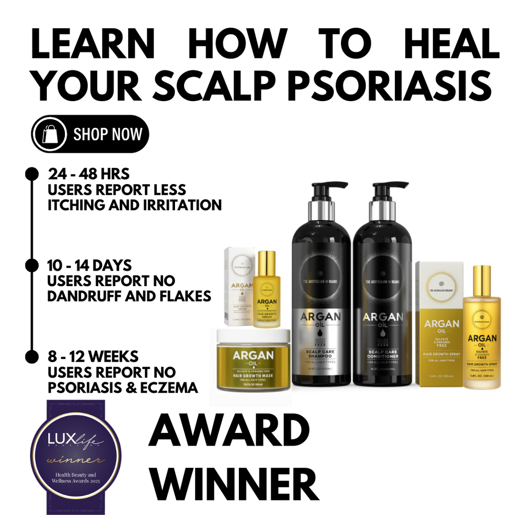 Ditch steroid-packed tar shampoos and creams! Try our revolutionary Shampoo with modified Argan oil elixir to naturally soothe and clear psoriasis on your scalp and body.